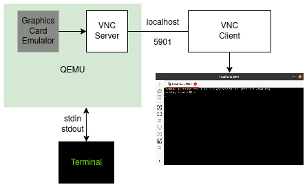 This tells QEMU to fire up a Virtual Network Computing (VNC) server on this computer (localhost